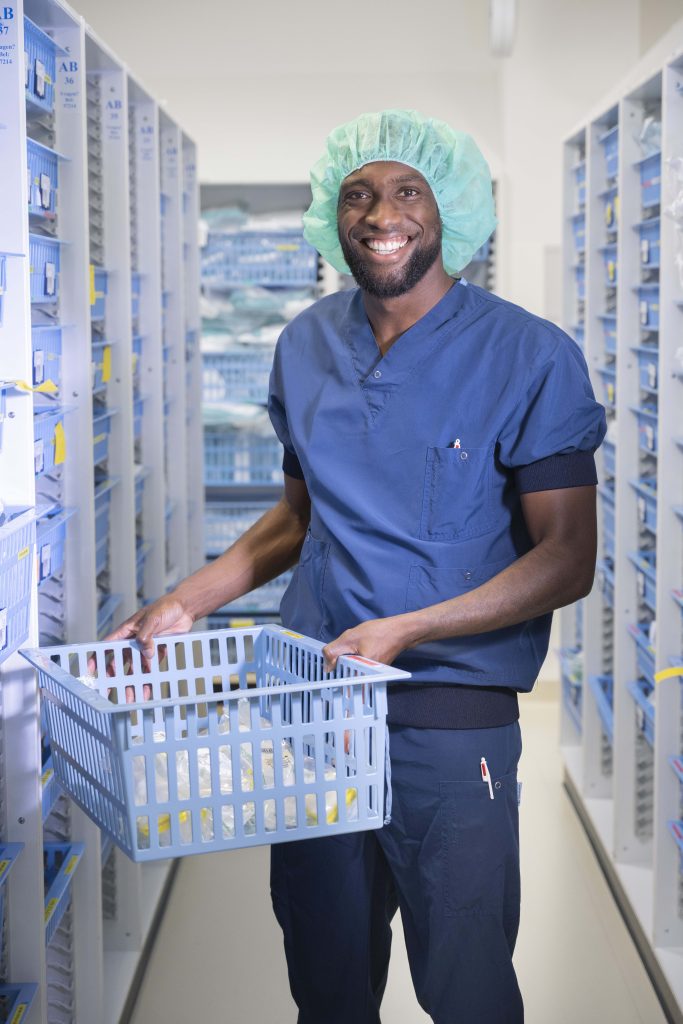 Guillermo Ooft, teamleider OK bij UMC Utrecht, was nauw betrokken bij het ontwerp: “Vanuit de OK vonden wij het belangrijk dat het nieuwe pak werd uitgerust met meerdere zakken inclusief drukknopen. Een frustratie van mij, maar ik denk bijna wel alle collega’s, was dat er continu spullen uit de zakken vielen, zoals telefoons en dienstlijsten omdat de zakken in het oude pak niet afgesloten konden worden. Met dit prachtige nieuwe pak is dit probleem opgelost en hebben we zelfs een extra broekzak ‘gekregen’. De kleur is mooi en de stof voelt lekker aan. Kortom, ik ben enorm blij en trots op dit nieuwe pak.”